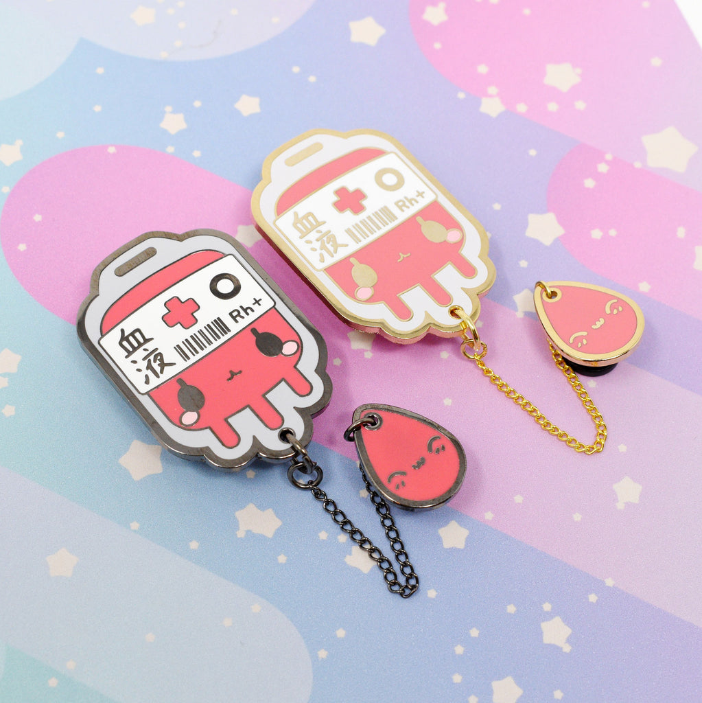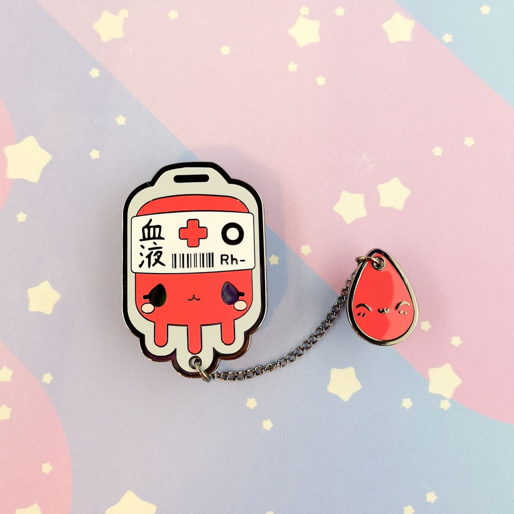 O+ Positive Blood Bag -- Hard Enamel Collar Pin -- Kawaii Medical Pins Series